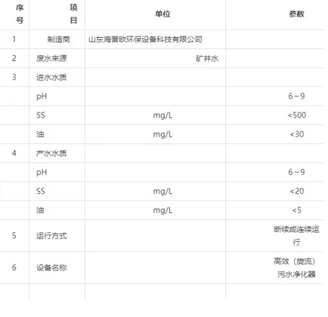 在高懸浮物污水處理中,HPO-XL型高效污水凈化器顯示了較大的技術優勢。它無須設置預沉池,可以快速連續高效地將 SS≤5000mg/L 的污水凈化到 5~30mg/L,該技術最高可以處理 SS≤10000mg/L 的污水,為高濃度含煤污水、灰渣水、礦井污水、砂石骨料沖洗污水、施工污水、高懸浮物污水處理開辟了一條新途徑。